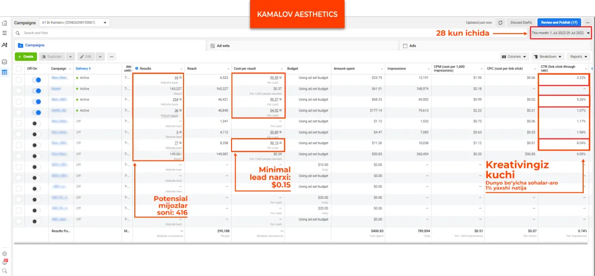 5 yillik tajriba va 823 000$ dan oshiq sarflagan reklama byudjetimizdan kelib chiqqan yondashuvimiz bilan...